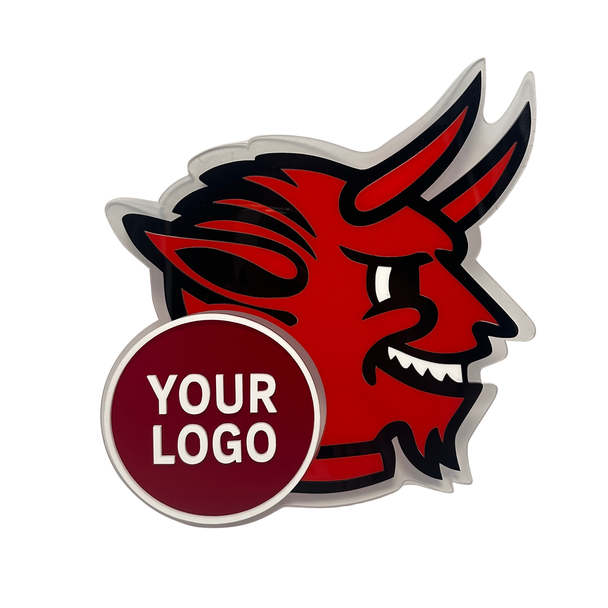 Each logo is made from premium acrylic glass and produced with a high-precision laser cutter.